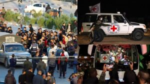 हमास और इजरायली के बीच हुए चारदिवसीय युद्धविराम समझौते के तीसरे दिन 17 और बंधकों की रिहाई हुई. इनमें 13 इजरायली और 4 विदेशी नागरिक शामिल हैं. हमास ने गाजा के एक अस्पताल में इन बंधकों को रेड क्रॉस इंटरनेशनल सोसायटी के वॉलंटियर्स के हवाले किया, जिन्होंने सभी को इजरायली सुरक्षा बलों को सौंप दिया. हमास ने अब तक बंधकों के तीन बैच को रिहा किया है, जिसमें 39 लोग शामिल थे. इसके बदले इजरायल ने अपनी जेलों में बंद 117 फिलिस्तीनी कैदियों को रिहा किया है.